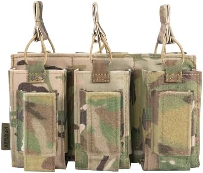 - Material: This molle mag pouch made of high quality America MULTICAM 500D Cordura Nylon material, tear-resistant, wear-resistant, special design on the outside of the magic stickers that can stick badge to your favorite.