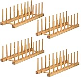 - Lawei 4 pack Bamboo Wooden Dish Racks Size: 33 x 12 x 10.5cm, 8 slots, the spacing between the slots was 3cm Material: Made of natural bamboo, smooth to avoid scratching This dish rack can be used as a plates rack or pot lids holder or cutting boards storage or cups drying rack or even books, tablets, laptop arrangement.