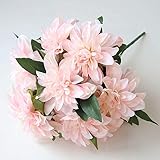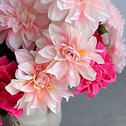 - -Exquisite Appearance with High Quality The artificial dahlia flowers bud and leaves are made of silk, making the dahlia the same as real one with sweet smell and giving you a realistic touch. The stem is made of plastic with steel inside. You can bend and cut it whatever you like to fit in your vase. -Abundant Consistent The whole silk dahlia bouquet has abundant parts with 10 stems, 10 flowers, and several leaves. If you want to have a beautiful foral flower arrangement, you can decorate with more than one color. -Passing for Genuine Dahlia Made of silk material, the artificial dahlia is perfectly like same as the real one, no matter on its appearance or its touching. Unlike the real fresh dahlia, the artificial dahlia can be conserved several years. It won’t be withered and faded as time goes by. -Glorious Moral The fake dahlia flowers stands for wealth and good luck. You can buy it for your parents, friends and lovers as gifts. It is also ideal for decorating your home, wedding, office and parties to add vitality. -Tips Actual color of the flowers may vary from the pictures due to lighting. Due to packing and transportation, a few flowers may become loose or fall off. You can easily push the flowers back onto the stems.