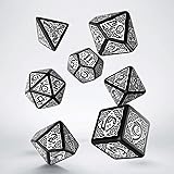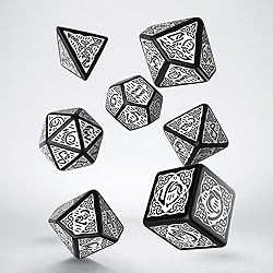 Celtic legends have always aroused human curiosity. New Q Workshop dice made to glorify craftsmanship of celts, engraved knots and symbols fully illustrate greatness of this people. This is standard set with seven Polyhedral dice (D4, D6, D8, D10, D00, D12, D20). Dice are made from the best material. This set is black with white painting in complexly carved engravings. Dice are decorated with engraved knots and Celtic symbols with convex patterns with the paint that fills the background. These dice are universal and usable in all roleplaying and tabletop games (like Pathfinder, dnd 5E etc.)