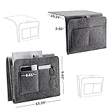 - Specifications: Color: Grey Material: Felt Size: 13” x 9” Package include: 1pc bedside caddy Occasion: For Dorm: This product is especially great for bunked beds. You can use it to store anything from glasses to TV remotes without having to climb up and down the ladder. It is made of a really high quality material and is built to last. Highly recommend this to college students. For Bedroom: This bedside caddy is super convenient. Isn't very big so it fits any size bed. Lots of pocket space to store the things you want close at hand. You hang it on your headboard so you can reach your stuff without having to fumble around on your side table in the dark, knocking things on the floor inevitably. For Living Room: Remotes were always getting lost under the sofa or in the covers. This is nice and can just put them in this caddy. Customer Service: If for any reason you're not completely happy with our product, please feel free to contact us. Note: 1. Please allow 0-1 cm error due to manual measurement 2. Monitors are not calibrated same, item color displayed in photos may be showing slightly different from the real object.