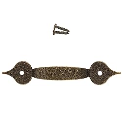 Dimensions: 3 1/4" Centers; 5" Wide x 1" High. This hammered drawer pull is made of steel with an antique brass finish applied. The package contains one drawer pull with mounting screws. This arrow end drawer pull is easy to install and gives a vintage look to your furniture piece. It perfectly complements an antique dresser, cabinet, armoire, bedside table, desk, and more. Our handles are a nice feature for completing an antique restoration or woodworking project. Using these pulls on kitchen or bedroom furniture can also add a vintage touch to modern home decor.