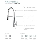 Modern European inspired commercial design a sleek sophistication for both style and functionality High arc pull-down spout provides extra clearance for deep pots and pans and expands work area Single handle control provides ease of operation with one hand Convenient 2-function pull-down spray with durable stainless steel braided hose Available in chrome and stainless steel finish