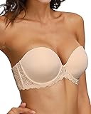 HWDI Strapless Clear Back Strap Convertible Bra with Lace Padded Underwired Plus Size Brassiere