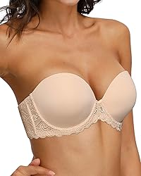 Strapless full figure underwire bra with lightly padded that provides a nice shape for your breast as well with a generous lift and push up,it fits well and have a secure cover up to keep this girls up. Convertible bra comes with 1 bra, 2 color shoulder straps, 2 clear shoulder straps, 1 color back band and 1 clear back strap. So it converts 6 ways for versatility-- strapless traditional crisscross halter backless and one shoulder for strapless dress, low cut tops, backless dresses, low back t-shirt, and everyday's wear. The wide lace band can hides any back fat and very flattering and comfortable to wear all day, the non-slip material alone the back and sides prevents sliding and it stays up without saggy. This plus size bra work well for big chested woman,Comfort while hugging your curves snugly enough to stay in place and great support. Size option:32B-46D,meet varieties of your needs and please measure the detail size with yours before buying.