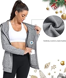 Hibelle Women's Full-Zip Fleece Lined Hoodie Sports Sweatshirts with Handy Pockets & Inside Pocket