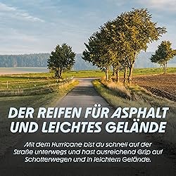 ALL-TERRAIN TIRE – The Schwalbe tire is an impressive intermediate bicycle tire for bikes and e-bikes, as well as an MTB tire. For anyone who wants to be fast on the road while still expecting unrestricted performance on light terrain. EFFICIENT & VERSATILE – Thanks to its smooth center tread, the Schwalbe tire rolls very quietly, efficiently, and with low resistance. The micro-serration in the transition area further improves grip in corners. COMFORTABLE ON THE ROAD – Stable shoulder lugs ensure a secure grip on unpaved roads – ideal as a tire for fast bikes on the road and off-road. Available in 26“, 27.5”, 28“, and 29” inches. SAFE ON THE ROAD – The Hurricane bicycle tire with RaceGuard puncture protection is optimized for e-bikes up to 50 km/h (E-50) and offers high durability and safety. Perfect for bike tours on asphalt and in light terrain. BRAND EXPERTISE – Schwalbe stands for over 100 years of tradition and expertise in the field of bicycle tires and bicycle accessories, which guarantees quality and reliability in every product.