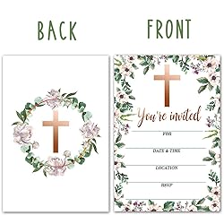 - This Invitation is the perfect accessory for Religious Events. Ideal invitations for your family and friends. A fabulous addition to your Religious Event decorations and Baptism supplies. Each invitation comes with a 5”x7” white envelope. Light up your Religious Event with our brilliant invitations. A christening, baptism, first communion, reconciliation or confirmation is a very special moment in every parent’s life. Invite friends and family to share in the joy of your son or daughter’s special day with these unique invitations.