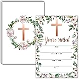 Religious Celebration Invitations with Envelopes – Floral Frame Style Invitations for Baptism, Confirmation, Christening, First Communion – 30 Cards With Envelopes