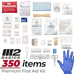 - The M2 BASICS Professional 350 Piece first aid kit delivers comprehensive emergency preparedness for business, home, car, vehicle, and work environments. Built inside a durable wall mountable hard case, this medical kit keeps critical supplies visible, protected, and ready for fast response. This professional kit includes a wide range of bandages, sterile gauze pads, antiseptic wipes, adhesive dressings, elastic wraps, gloves, burn care supplies, and other essential first aid supplies commonly needed in offices, warehouses, retail stores, schools, construction sites, fleet vehicles, and residential spaces. The wall mountable design allows placement in high-traffic areas such as break rooms, garages, job trailers, classrooms, and commercial facilities. Dual-layer swing-out compartments keep items organized and easy to access, helping reduce response time during emergencies. Whether managing a business, overseeing a job site, stocking service vehicles, or strengthening home safety, this professional first aid kit provides dependable readiness and peace of mind where people live and work.