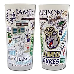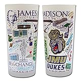 Catstudio Drinking Glass, James Madison University Glass Cup for Kitchen, 15oz Dishwasher Safe Tumbler for JMU Alumni