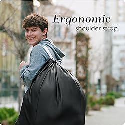 SUPERIOR DURABILITY: Built with strong materials and heavy-duty stitching, this laundry bag is designed to handle significant weight and resist wear and tear over time SPACIOUS DESIGN: Measuring at 30" x 40", the bag is capacious enough to accommodate large volumes of laundry, including bulky items, making it an ideal companion for laundry trips, storage, or travel ADJUSTABLE SHOULDER STRAP: The bag features an adjustable shoulder strap for easy transport. This strap allows for hands-free carrying, adding comfort and convenience to its use MULTIPURPOSE UTILITY: This versatile bag can serve various storage needs, from laundry and linens to camping gear, thanks to its simple design and robust build CONVENIENT FEATURES: Equipped with a drawstring locking closure for secure storage and an extra grommet for hanging and additional carrying options, the bag is thoughtfully designed for ease of use