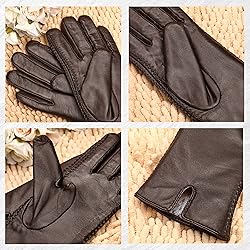 🐑Elegant Ladies Sheepskin Gloves: These women's leather gloves are made of genuine Australian imported sheepskin with a comfortable and soft faux rabbit fur lining. Provides you with warmth and comfort in the cold spring, autumn and winter, while resisting the cold while showing your beautiful hand curves 🐑Design Highlights: Both sides of the gloves are woven with patterns, and the wrist part has a U-shaped design, which is very simple and generous. We consider women who like to keep their nails long, so the length of the fingers may be a little bit longer. This women's glove is mid-length and extends 2.4in beyond the wrist, so you don't have to worry about the wind getting in from your wrist 🐑Touch Screen: We have added conductive fibers to sheepskin, so it is very flexible and convenient, whether you wear it indoors or outdoor activity like running, cycling, driving,.etc 🐑Care&Clean: Please keep the leather gloves in a ventilated place and avoid from touching sharp objects. If there are stains and dirty on leather gloves, wipe gently with a soft cloth, or use a special leather cleaner 🐑Size:S:6.5"(6"-6.5");M:7"(6.5"-7");L:7.5"(7"-7.5");XL:8"(7.5"-8"),hope it can help you.We hope you like our products,thanks!
