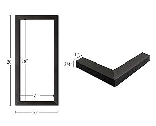 Dimensions: 8x18in acrylic overall size 10.5'x20.5' Black Moulding Two Frame pack Saw-tooth hanger on back, ready to hang! Flexible framers points on back for easy access