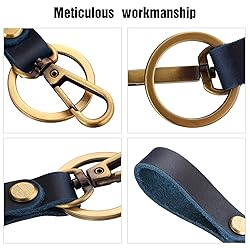 What for you: 4 small leather key chains in 4 different colors, black, brown, blue and coffee, (details seen as the picture), which are manufactured from polished metal for a shining mirrored finish, ensuring strength whilst remaining lightweight Durable material: instead of traditional needle and thread textiles, the leather belt was mainly made by cowhide; The key ring is made of durable brass material that is retro and elegant, classic yet fashionable Practical presents: the leather valet key chain can be applied as a simple and practical gift for father, uncle, grandfather, etc., or as a team gift to colleagues, classmates and friends, during Christmas, holidays, Easter, or someone's birthday or recovery Lightweight and portable: each general length is 11.0 cm/ 4.33 inches, the large ring is about 3 cm/ 1.18 inches in diameter, belt length is 7.0 cm/ 2.76 inches, thickness is about 0.5 cm, the proper size makes these leather valet keychains easy to carry, easy to put in a pocket or purse, and easy to find; You can easily buckle it into another key ring or key Wide application: the loop key ring is suitable for men and women, adults and all to separate home, car, office keys, and other little gadgets