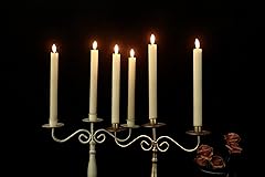 - Flameless Taper Candle Specification: *candle color: Ivory *candle Material: Real wax with Led light *Light color: Warm light *Features: Flameless, flickering, timer, remote *Application: Suit for all occasions *Switch type: Push switch Package Included: *8 x Flameless taper candles (Size: 0.78 inch diameter x 9.64 inch high) *2 x Remote control *1 x User Manual Battery Operated: *Battery Operated: Flameless taper candles requires 2 AAA batteries(Not Included) *No Mess,No Flame One Remote Control All Candles: *ON/OFF: Control candles on/off *LIGHT: Flickering/Non-flickering *BRIGHTNESS: Increase/Decrease brightness *TIMER: 2H/4H/6H/8H timer mode *For example, if you set the 4 hour timer at 18:00, then these flameless taper candles will light 4 hours and turn off themselves at 22:00. And will automatically turn on again at 18:00 next day, cycle every 24 hours More Tips: * This candle is made of real wax and is flammable. Do not attempt to light this candle * Keep out of direct sunlight, away from heat sources and out of extreme temperatures or your candle may soften or melt *There will be slight battery drain in timer mode even if the flameless candle are not light *Please remove the batteries if plan not to use for a long time
