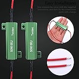- Package Include:4PCS 50W 6ohm Load resistors with 8Pcs T-Taps.Those LED load resistors will work for most of the cars in the market. Please do your research before purchase about what kind of load resistors you need for your car.If there are any problems,Please contact us immediately.