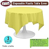 PARTY ULYJA Light Yellow Tablecloths Plastic 3 Pack Premium 84 Inches Disposable Table Covers Decorative Table Cloths for Round Dinning Kitchen Tables