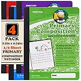 Mintra Primary Composition Notebook, 4 Pack, Assorted Colors 80 Sheets, 7.5in x 9.75in, 1/2 Sheet, Ruled with Drawing Area, Flexible Hardcover Journal, Grades K-2, School & Home Use