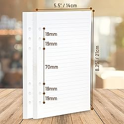 Fits Wanderings and other A5 8.75 x 6.5” (22.5 x 16.5cm) binder planners - Please measure carefully to avoid disappointment! Compatible with popular 6 ring A5 size binders/planners Filofax (A5) and Kikki.K (Large), Carpe Diem (A5), Foxyfix (A5), Gillio (A5) Dokibook (A5, Large), Van der Spek (Manager) Thick 120 GSM paper is fountain pen friendly and prevents bleed-through. Off-White in color. Great for bullet journals, planners, writing, note-taking, lists for work, home or school. 100 sheets / 200 pages Lined A5 paper. Our 6 ring personal planner inserts are also availabe in Dotted, Blank, as well as both Dated and Undated Calendar planners Write, journal, dream or plan to your heart's content with 100 sheets / 200 pages total! Our 6 hole A5 Planner inserts areThick enough for fountain pens and ink will not bleed through Also available on Amazon in Blank (B07Z1ZZ5JB), Dot (B07Z26HHSX), Dated Calendar (B07Z5KFHGC), and Undated Calendar (B085T8R6FY)