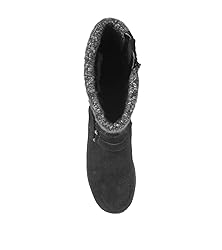 1.5 in heel height 12.5 in. shaft height; 14.25 in. calf circumference Water-resistant calf suede/faux fur lining. Weatherproof Technology: Water-resistant & weatherproof construction help keep your feet dry Treaded sole for increased traction; Soft cushioned lining for warmth and comfort. Inside zipper closure for easy on/off Stitched with thread made from 100% recycled materials