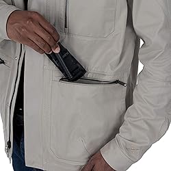 URBAN DISCIPLINE: The Ideal Combination of Fit, Form and Function TACTICAL FEATURES: Zippered pass-throughs in both front hand pockets allow discreet access to appendix-carry gear; Front storm placket can be closed with zipper or concealed snaps; Shock-corded comms pass-throughs at top of shoulders COMFORT & DURABILITY: Extended tail maintains belt and back coverage; Articulated sleeves and seamless underarm gussets; Cuffs adjust with double snap closure; Main seams are double-stitched for strength and authenticity FIT & FABRIC: Relaxed fit allows freedom of movement and layering for a variety of looks; Light simulated wax finish provides water and wind resistance and a casual weathered appearance PREPARED PROFESSIONAL: Stay prepared both on and off the job with strategic features and classic look