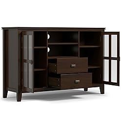 SIMPLIHOME Artisan TV Stand - 53 inch Wide Solid Wood Tall Media Console in Tobacco Brown, Contemporary Entertainment Center for Living Room for TVs up to 60 Inches with Drawers and Cable Management