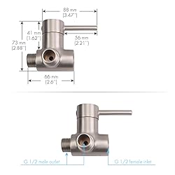 - SPECIFICATIONS Body Material: Brass Handle Material: Zinc Alloy Cartridge: Ceramic Disc Cartridge Diverter Type: 3-Way Spray Mode: 3, Divert Water Between Handheld, Fixed Spray Showerhead or Both Inlet Connection: G 1/2 Female Outlet Connection: G 1/2 Male Finish: Brushed Brass PACKAGE INCLUDES 1 x Diverter Valve 3 x Gasket 1 x Free Teflon Tape NOTE: Shower arm and shower head are NOT included.