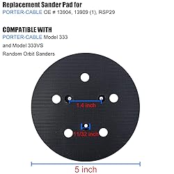 5" Sander Pad for PORTER-CABLE 333 and 333VS Random Orbit Sanders - Replacement for No. 13904 Hook-and-Loop Pad. 5-inch diameter, 5 dust holes and 3 screw holes. NOTICE: Screws and washers are not included. You could use the existings on your sander. Built-in mounting thread for quick and easy installation. Hassle-free and attaches easily. Prevents damage to disc holders. Ensures a smooth, polished result.