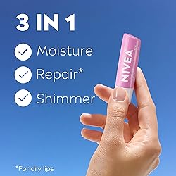 SHIMMER LIP BALM: Fabulous pale pink tint and shimmering pigments enhance the natural beauty of your lips and leave a beautiful pearly tint and shine DEEP HYDRATION: These moisturizing lip balms leave lips hydrated and help protect from dryness with long-lasting moisture NOURISHING INGREDIENTS: Enriched with Shea Butter, Nourishing Oils and Vitamins C and E to help moisturize, repair and nourish dry lips FORMULATED WITHOUT: These lip products are made with 98% naturally derived ingredients** and formulated without preservatives, phthalates and silicones DERMATOLOGICALLY-TESTED: NIVEA Lip Care products are dermatologically tested for skin compatibility BULK LIP BALM PACK: This lip balm pack includes four (4) 0.17 ounce sticks of NIVEA Shimmer Lip Care, a perfect gift for friends and family or for stocking up
