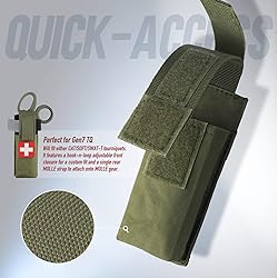 - Tourniquet Pouch is designed to securely hold your tourniquet and medical shears in one convenient pouch. Will fit either most brand in the market tourniquets.The perfect combination to your belt, or attached to the backpack. MOLLE Multi-Functional PouchThe durable single sheath can hold an extra flashlight, small cellular phone, multitool, folding knife. MOLLE CompatibleMedical Shears Pouch can be attached to a belt, medical pouch or molle system.Adding 2 rows of the MOLLE straps on the back for compatible with more sizes waist belt. Hook-N-Loop ClosureSecured by hook and loop fastener, hold your shears securely and allow easy access in case of emergency. Easy to Carry AroundCome in different colors in order to integrate with your other equipment. Please measure your tool before order. Specification:SIZE:16cm*6cm*4cm/5"*2"*1"(H*L*W)Material: 500D NylonWeight: 0.1lb/50g Package Include:1 * Livans Tactical Molle Scissor Pouch(Not include other medical supples)