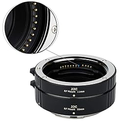 The part of camera mount is made of Aluminum, the part of lens mount is made of high quality brass, while the tube is made of high quality ABS plastic Shortens minimum focusing distance of lens for macro photography, convert almost any lens into a macro lens, save your cost of buying an expensive macro lens Full Autofocus and auto exposure Compatibility Extension tubes of 11mm and 16mm lengths can be used individually or in combination for greater magnification Fits Canon RF mount mirrorless camera and RF mount mirrorless lenses. Not fits Canon RF teleconvertor or extender, such as Canon extender RF 1.4X, Canon extender RF 2X Note: the auto focus function will not perform very well after the tube attached, this is a problem in general for any brand extension tube set. The more tubes you add the more you have to close up the aperture in order to get the subject in focus, thus the more light you need. This means your camera may have a hard time auto focusing because of the small depth of field you work with. So compensate for it, use manual focus or set the camera on a tripod with a focusing rail.