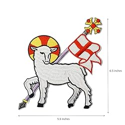 Cute-Patch 6.5" Agnus Dei Easter Lamb Embroidered Iron On Patch Christian Design SCA