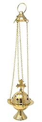 - Material - High Polish Brass - Size - 4 3/4 Inch (H) x 3 3/8 Inch (Dia) - Censer is on a 10 Inch (L) Chain - Censer has a Loop on Top for Hanging and a Cut out Cross Design - This is Perfect for Home, Chapel, and Church