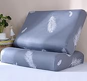 - Plaid Print Cotton Pillow Case Covers for Contour Neck Memory Foam Pillow Pillowcase with Zipper (Grey feather)
