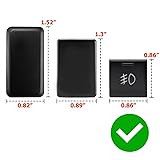 Compatible with Toyota 2018-22 Camry and 2019-up Corolla (it's the customer's responsibility to verify the size and shape prior to purchase!) Push button switch (front panel size 22.8mm x 22.5mm) with 4 wire lead extended pigtails, which you don'thave to use if your vehicle has the female end stock harness/adapter Please confirm the measurements before buying by checking the photos and reading previous customers' comments; this switch is compatible only with an identical shape and size of switch panel/opening/slot, and any discrepancy will require modifications to install it Ideal for installing auxiliary LED light bars, off-road LED pod lights, fog lights, DRLs, and strobe lighting, enhancing your vehicle's functionality and appearance while providing improved visibility and a modern look Installation/wiring guide: connect BLACK to ground or relay pin #85, RED (for the fog switch background indicator) to battery, ACC 12V+, or relay pin #30, YELLOW (for the fog on/off indicator) to the same #30, and BLUE (for trigger) to relay #86 (you can also check the diagram for more details)