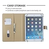 Synthetic leather universal case for all round 7.9-8.5 inch tablet. Such as 7.9'' iPad Mini 1/2/3/4, iPad Mini 5 2019 release, Galaxy Tab A 8.0 2015/2017/2018/2019, Galaxy Tab S2 8.0 and Kindle Fire HD 8 2016/2017 Version. With money pocket and card slots which can hold cards and some cash,bring convenience to your work and life. Free your hands to stand the tablet screen up when reading books or watch videos from multiple angles. PU leather folding folio case is equipped with 4 clasps to well fix and protect your tablet PC. Magnetic closure ensures the cover stay closed when not in use.