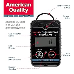 - Stay protected from hazardous carbon monoxide levels with the Sensorcon Inspector 2 Industrial Pro Carbon Monoxide Detector (INS2-CO-03). This portable, intrinsically safe CO detector is a professional-grade instrument designed for emergency responders, firefighters, police personnel, building inspectors, and workers near gas or diesel-powered equipment. Featuring advanced electrochemical sensor technology, these CO detectors deliver fast and accurate CO readings from 0 to 500 ppm. Built to withstand harsh environments, the Inspector 2 Industrial Pro offers a rugged, shock-resistant, and water-resistant (IP67 rated) housing, ensuring durability and reliability in the field. A large, high-visibility LCD screen clearly displays CO levels, while adjustable audio, visual, and vibration alarms provide customizable alerts tailored to your needs. This model stands out with its innovative 24-hour Time Weighted Average (TWA) mode, continuously monitoring CO exposure over a full day to help track cumulative risk. Additionally, the programmable high and low alarm set points allow users to set specific thresholds, offering enhanced safety and control. Lightweight and easy to carry, the Inspector 2 Industrial Pro includes a durable steel clip and lanyard loop for hands-free convenience. Powered by a long-lasting battery with up to two years of operation and assembled in the USA, our portable carbon monoxide detectors are backed by a 2-year warranty, making it a trusted choice among professionals.