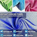 Instant Cooling: Made of hyper-evaporate breathable mesh material, it uses moisture from the towels to draw the sweat away from your skin and keep you cool How to Use: Cool down quickly just by simply soaking it, wringing out the water and shaking it. Just a few seconds the chill towel will keep cooling for several hours and reactivate the chilling by repeating the steps Quality Material: Made of premium microfiber with a mesh pattern, it's super absorbent and dries quickly. Also soft and durable Multi Purpose: It's suitable for outdoor activities, indoor exercise, vacations to hot places, sunscreen protection. Great for running, cycling, workout, bowling, golf, yoga, gym, fitness etc Easy To Carry And Clean: Each towel comes with a carrying pouch and a carabiner clip. Easy to store, carry and hook on sports bags and travel backpacks. Both hand and machine washable
