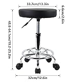 KKTONER PU Leather Round Rolling Stool with Foot Rest Swivel Height Adjustment Spa Drafting Salon Tattoo Work Office Massage Stools Task Chair Small (Black)