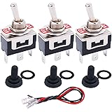 Product Name: Toggle switch;Material: Plastic And Metal;Solid connection switch with waterproof rubber cap, more convenient to operate Connector type: SPDT 3 Pin 2 Position ON-ON ;Rated Voltage & Current :16(10)A 250V AC;The waterproof rubber cover can prevent all toggle switches from being affected with damp and dust when being applied to ships, yachts, boats and other marine Toggle Switch Total Size: 55mm x 29mm x 14.6mm/2.16"x1.1"x0.57"(L*W*H);Mounting hole diameter: φ12mm;Spade Terminal Diameter:6.4mm Toggle switches have connecting wires and are easy to install.Mechanical life: more than 50.000 cycles. Electrical life: more than 10, 000 cycles. Package Content: 3 x Rocker Toggle Switch + 3 x Waterproof Boot Cap + 9 x Connection line