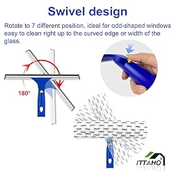 - If the thought of cleaning your windows sounds overwhelming, you might consider paying a professional service $200 or more to clean your windows one time. Once you get correct window cleaning tools,all things become easy. ITTAHO cleaning supplies supply all kinds of cleaning tools to deal with your questions. Save Money! Save Time! All purpose SWIVEL window squeegee and microfiber scrubber combi and 53 inch long handle perfect for streak free Swivel design,enabling you to clean right up to width of the glass,curved edge ,perfect for odd-shaped windows 53 inch extension pole included,safe and convenient for cleaning hard-to-reach and high areas. Threaded connection, easy to assemble What you get1 x 12 inch squeegee 1x 11 inch microfiber scrubber attachment 2 x 11"Microfiber mop pads 3 section of stainless steel pole(total 53 inch) Protect the environment,reduce the use of paper towel, action now,buy ITTAHO window squeegee for window cleaning