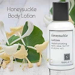 Nabila K Honeysuckle Body Lotion - Moisturizer for Body, Hands and Feet - Aloe Vera & Water Based - Shea Butter & Olive Oil - Naturally Scented - 2 oz