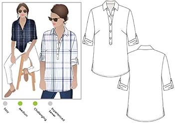 - This is a women's over-shirt sewing pattern from Style Arc. This classic over-shirt pattern has a relaxed feel and features a neat shirt collar, ¾ front tab and rolled up sleeve held by a buttoned tab. This style is crafted for relaxed weekend wear. FABRIC SUGGESTIONS: Linen, crepe, cotton or any shirting weight fabric. FABRIC ESTIMATE: Fabric Width: 148 cm (58 in) > Sizes 4 - 18: 1.5 m (1.7 yd) > Sizes 20 - 30: 2.5 m (2.75 yd). FUSE ESTIMATE (width 90 cm or 36 in): 40 cm (16 in). TRIMS: 8 x buttons 11.5 mm / 18L.