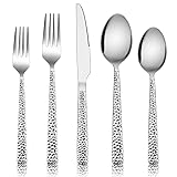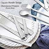 E-far 20-Piece Hammered Silverware Set, Stainless Steel Square Flatware Set Service for 4, Tableware Cutlery Set Includes Forks Spoons Knives, Modern Design & Mirror Finish - Dishwasher Safe