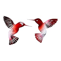 - Bring the joy of life into your home with this pair of fuchsia tainted hummingbirds. Brighten up any space including your bedroom, bathroom, living room, kitchen, and more with these beautifully handcrafted birds. This piece is 100% handcrafted in the USA. Finish: Polished steel and tainted in our "ruby " with a clear coat. Approx measurements: 6" w x 6" h Note: small drill hole in each for ease of hanging.