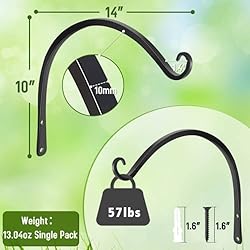 - Our products: -2 x plant hook; 4 x screw -10.6 inches in height and 14 inches from the wall. -High-quality iron makes the hook glossy and do not rust easily. -Black finish adds elegance to your living space and matches any thing that hangs from it. Easy to install: The metal screw can bite into wood or wall quickly and easily,so just find a flat surface and use the screws included in the package,you can start your decoration plan immediately. Add beauty to your living space: A very useful indoor or outdoor decoration tool. You can use it to decorate your bedroom,living room, bathroom,entryway, patio, porch, garden, backyard by hanging plant, baskets, mason jar lights, string lights, holiday decorations, bird feeder,yoga mat,etc. About Feed Garden:We specialize in gardening products and are committed to helping you create a beautiful and comfortable living space. We provides quality products and efficient after-sales service.If you're not satisfied with our products,please contact us,we will solve the problem for you.