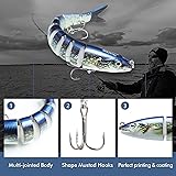 10 SEGMENTS LIFELIKE LURES: Designed with 10 segments multi-jointed body, TRUSCEND fishing lures can sink slowly and move flexible in water. In addition, life-like swimming actions make it attracting more catches and provoking predator fish to strike. HIGH SIMULATION: With 3D realistic looking eyes and pearl powder coating, these fishing lures for freshwater appear very delicate and vivid that looks like a real fish. A perfect fishing lure that easily cheats the target fishes. ULTRA-SHARP TREBLE HOOKS: The lures fishing plugs are equipped with exclusive custom fishing hooks, which featuring anti-rust, high corrosion resistance, and superb piercing power. Plus, we use flexible and powerful fabrics for the fish lures, making these fishing baits the most reliable fishing gear for bass fishing. BASS VIBRATION: Made of high-quality ABS material and equipped with built-in rattle, these bass lures can continuously emit the fish sound wave to during the swimming to provoke the feeding urge of the fishes and induce them to attack. WIDELY FISHING SPECIES: The bass fishing lures can be widely used to catch bass, pike, trout, crappie, walleye, muskie, perch, snook, salmon, etc. The swimbait is quite suitable for both saltwater and freshwater and functions well in all water layers.