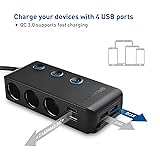 Expand your vehicle’s power options with the Cable Matters 3 Outlet Car Cigarette Lighter Splitter with USB Ports; Use the car cigarette splitter adapter to add 3 power ports and 4 USB charging ports to a vehicle Car charger splitter 3 socket connects to a 12V or 24V cigarette plug, expanding it into 3; car 12V splitter supports a maximum of 60W per cigarette power socket and a total overall power output of 120W; Car power adapter is ideal for connecting automotive accessories like GPS units, dash cams, fans, and charging cables Car lighter splitter multiple ports include 4 USB ports for optimal device charging; Car USB charger supports fast charging technology on supported devices; Other ports on the car power splitter provide up to 2.4A of charging power to USB devices; Charge smartphones, tablets, cameras, and other USB devices with the 12V outlet splitter Power-saving and safety features of the car power adapter include a main On/Off switch and an On/Off switch for each cigarette socket; LED voltage display on the 12 volt power outlet indicates if the vehicle is providing optimal power to support connected devices Car outlet splitter is ideal for mounting on the dashboard, center console, or leaving as is; Vehicle USB charger includes a mounting bracket and adhesive stickers for easy installation and easy access to the multiple car charger outlets