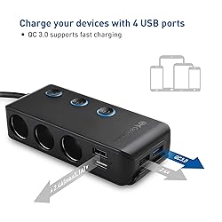 - Connect More With Cable Matters ProductsThe Ultimate Road Warrior Power Station The Cable Matters 3 Outlet Cigarette Socket Splitter with USB ports is an indispensable tool for cars, trucks, vans, and buses. Expand a single 12V or 24V cigarette socket into everything you need for your next road trip: 3 cigarette sockets and 4 USB charging ports. Power everything you need on the go with the splitter. USB Charging On The Go - Charge your devices on the road with 4 USB ports - Fast Charging on supported devices to quickly charge devicesSafe and Efficient Design - Main On/Off switch and individual On/Off switches for each car power socket for increased safety and energy efficiency LED voltage readout to verify safe and optimal car power level - Use the included mounting bracket and adhesive strips to mount on the dash, center console, or passenger compartmentPackage Contents - 1x Splitter - 1x Quick Start Guide - 1x Mounting bracket - 2x Adhesive mounting stickers - 2x 10A fuses Specifications - Input: Cigarette socket male (12/24V DC) - Output: 3x Cigarette socket female (60W per socket, 120W max power), 4x USB-A charging ports - USB Output: 1x Fast Charging - 5V 3A, 9V 2A, 12V 1.5A; 3x USB-A – 5V 5.5A total, 2.4A per port